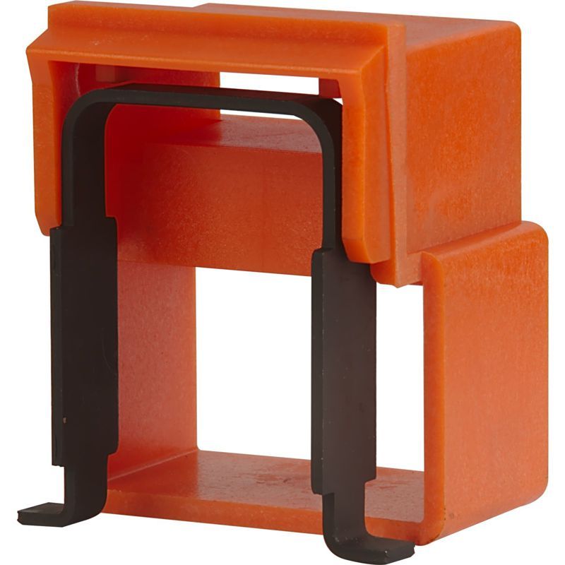 Монтаж выполняется вручную: устройство защёлкивается на специальный выступ на боковой поверхности контактора после перевода рычага в положение «выкл». Для установки не требуются инструменты. После монтажа блокиратор нельзя снять без ключа или специального устройства - обеспечивает контроль доступа.