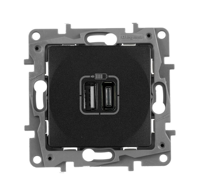 Устройство зарядное Etika с 2-мя USB разъемами A и C 240В/5В 3000мА антрацит IEK 672636 Legrand