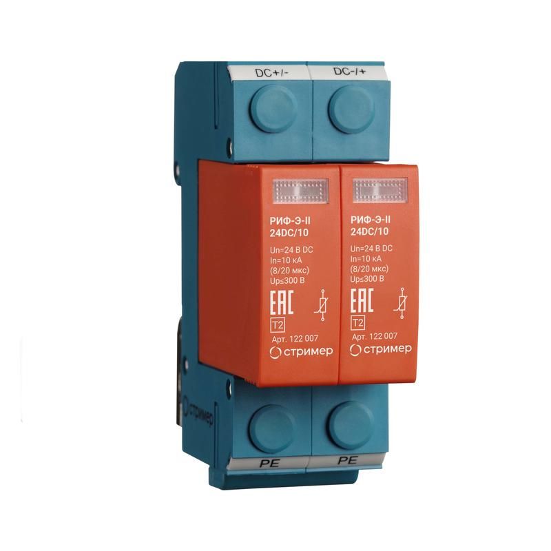 Устройство защиты от импульсных перенапряжений для систем постоянного тока РИФ-Э-II 24DC/10 - 24=/10 Стример 122007
