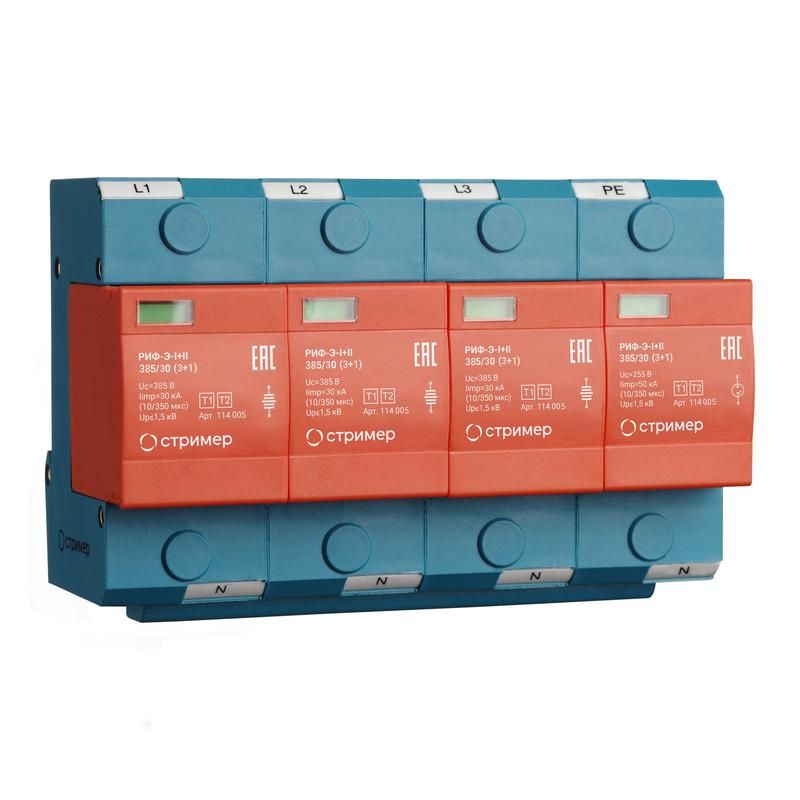 Устройство защиты от импульсных перенапряжений РИФ-Э-I+II 385/30 (3+1) Стример 114005