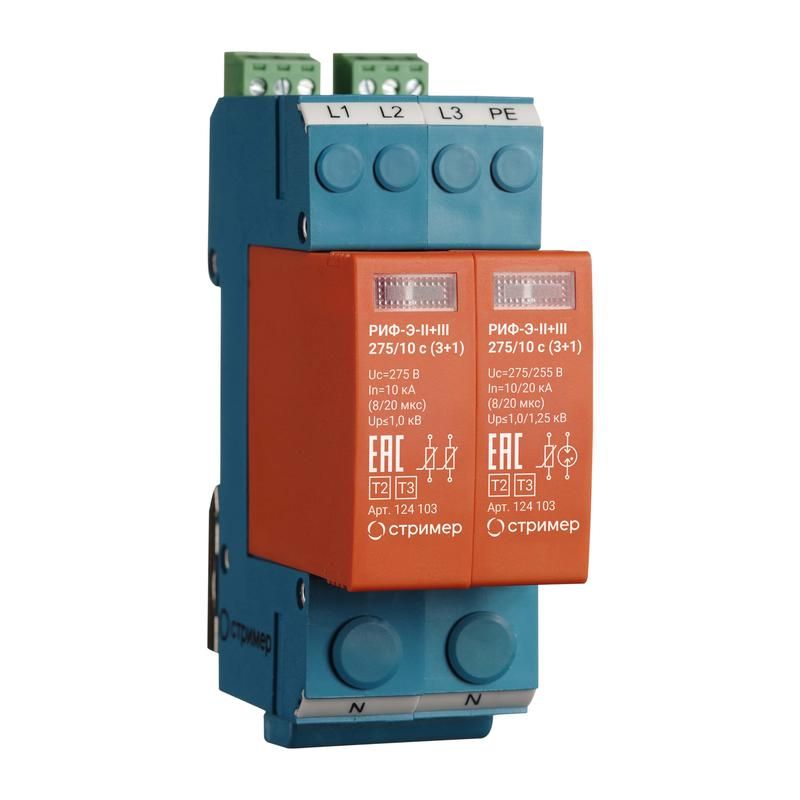 Устройство защиты от импульсных перенапряжений РИФ-Э-II+III 275/10 с (3+1) Стример 124103 c