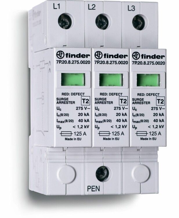| Устройство защиты от импульсных перенапряжений УЗИП тип 2 (3 варистора) для фотогальванических систем 750В DC модульный без доп.контакта IP20 FINDER 7P2397500020 | 26.02.2026 | Под заказ | 12 484,26 ₽ | шт. | от 30 дней |