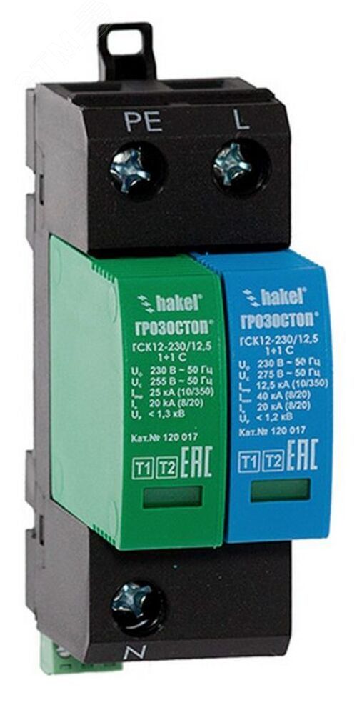 УЗИП ГРОЗОСТОП ГСК12-230/12,5 1+1 С, класс I+II , Iimp - 12,5 кА (10/350), Imax (8/20) 40 120 017 Hakel