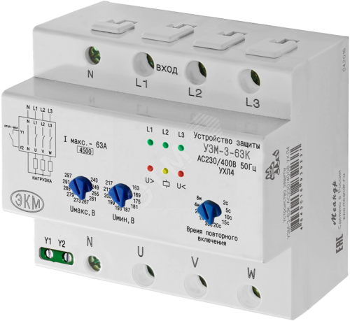 Устройство защиты многофункциональное УЗМ-3-63К AC230В/AC400В УХЛ4 - 4640016939237 Меандр