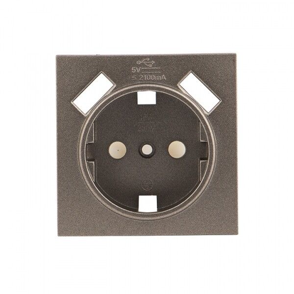 Валенсия лицевая панель розетки 1-местной с/з 16А графит с защ. штор. 2 USB 2,1А EKF PROxima | ESR16-L-028-60-2USB