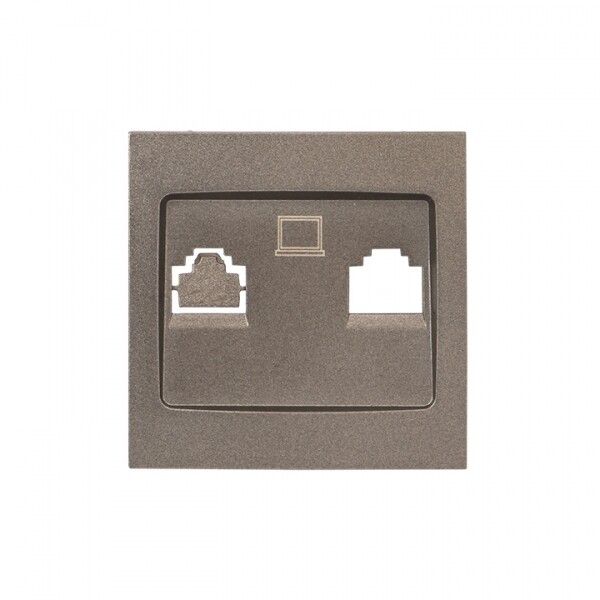 Лицевая панель розетки RJ-45 2-местная графит от бренда EKF, артикул esk02-l-035-60, предназначена для декоративного оформления и защиты двух портов Ethernet типа RJ-45. Это накладная деталь, которая монтируется на готовый внутренний механизм - сама по себе она не содержит контактов или проводки.