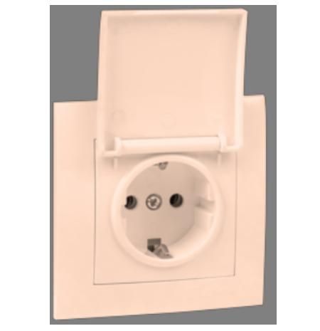 Валенсия розетка 1-местная с/з 16А кремова с крышкой и защ. штор. EKF | EWV10-124-20
