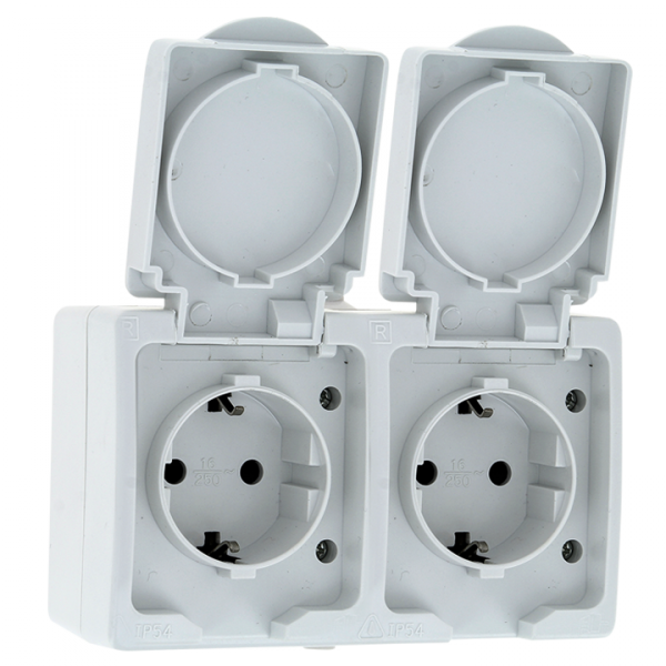 Венеция Розетка 2-местная 16А с заземлением крышкой IP54 белый защ. штор. EKF | EVR16-129-10-540