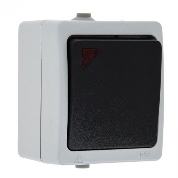 Выключатель Венеция одноклавишный с индикатором 10А IP54 серый - EVV10-121-30-54 EKF