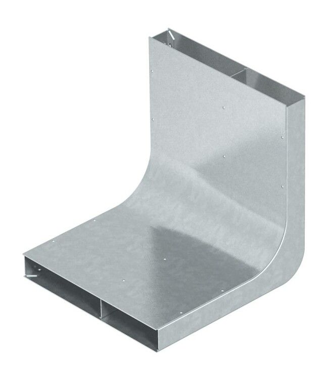 Угол вертикальный 90° кабельного канала EUK 190x38 мм (сталь) от OBO BETTERMANN предназначен для перехода между горизонтальным и вертикальным участками кабельной трассы. Этот элемент системы UFS обеспечивает надежное соединение кабельных каналов на примыкающих к стене участках, особенно при подводе питания к оборудованию снизу или сверху.