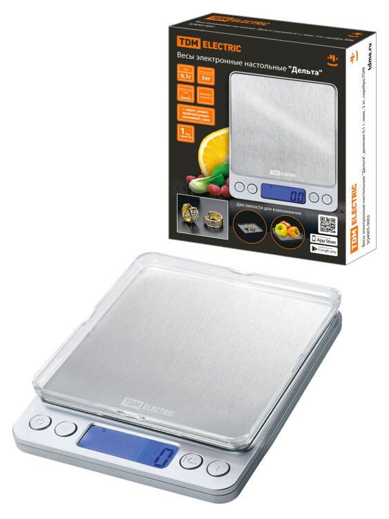 Весы электронные настольные "Дельта", деление 0,1 г, макс. 3 кг, серебро,TDM | SQ4005-0002 TDM