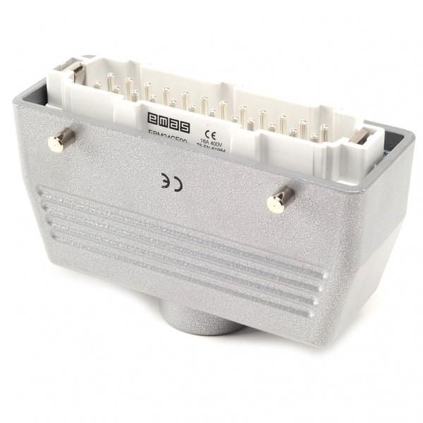 Вилка 24 полюса 16А, Кожух со штепселем металлический 24 полюса 16А, ввод PG 21, степень защиты IP65 от бренда EMAS - это прочный соединитель для надёжного подключения оборудования в условиях повышенной запылённости и влаги. Артикул ebm24fu30 предназначен для промышленных систем, где важна механическая устойчивость и герметичность.