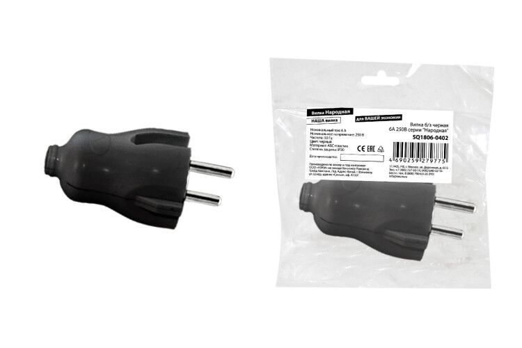 | Вилка б/з черная 6А 250В серии "Народная" | SQ1806-0402 | TDM | 25.02.2026 | Под заказ | 40,18 ₽ | шт. | от 30 дней |