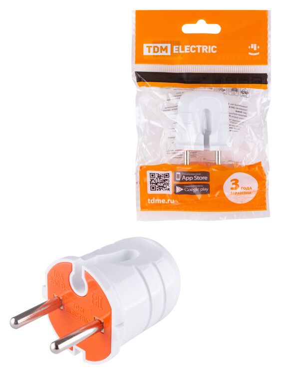 Вилка без защитного контакта белая с красной вставкой 10А 250В от TDM ELECTRIC (артикул sq1806-0209) - это двухполюсный разъем для подключения бытовых приборов без необходимости заземления. Подходит для устройств мощностью до 2,5 кВт, где безопасность обеспечивается за счет изоляции, а не защитного провода.
