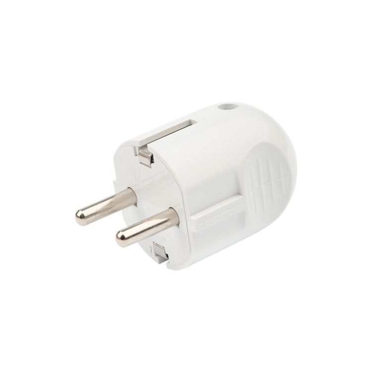 Вилка Евро прямая с защитным контактом 16А белая совместима с любыми европейскими розетками (Schuko, CEE 7/4). Для установки: