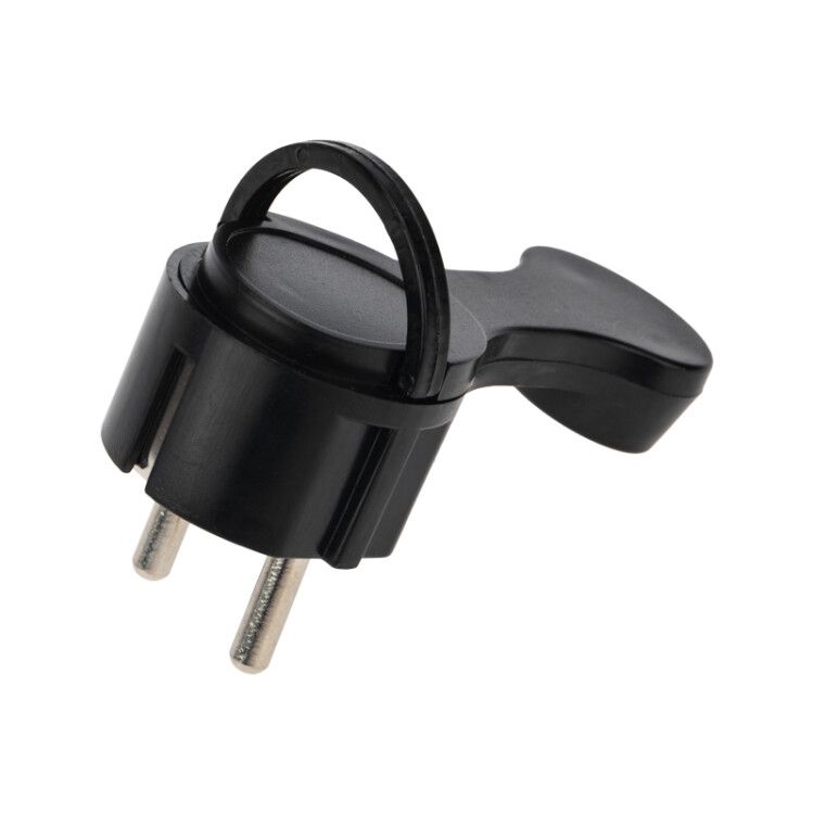 Вилка евро угловая с заземляющим контактом 16 А плоская для установки за шкаф черного цвета совместима со всеми типами евровилок и розеток стандарта CEE 7/7 (Schuko). Для монтажа требуется зачистить концы провода на 8–10 мм и затянуть винты зажимов. Обязательно соблюдать полярность: фаза (коричневый/красный провод) - к контакту L, ноль (синий/чёрный) - к N, заземление (зелёно-жёлтый) - к контакту с символом ⏚. После сборки проверьте надёжность крепления жил - слабый контакт вызывает перегрев. Максимальная площадь сечения провода - 2,5 мм2; более толстые жилы не войдут в зажимы.