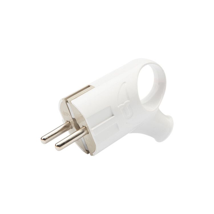 Вилка Евро угловая с защитным контактом 16А с кольцом белая используется для подключения бытовых приборов к сети 230 В. Подходит для замены неисправных или неразборных вилок в шнурах устройств: холодильников, стиральных машин, пылесосов, утюгов и других приборов мощностью до 3,7 кВт.