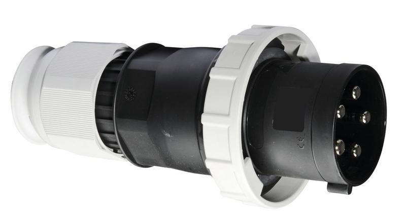 Эта вилка предназначена для подключения мобильного или переносного электрооборудования с питанием до 690 В и током до 32 А. Конструкция с пятью контактами (три фазы, ноль и заземление) обеспечивает безопасную передачу энергии на устройства, которым требуется защитное заземление. Применяется там, где есть риск попадания воды, пыли или агрессивных сред - например, на стройплощадках, в цехах, на открытых площадках, в пищевой и химической промышленности.
