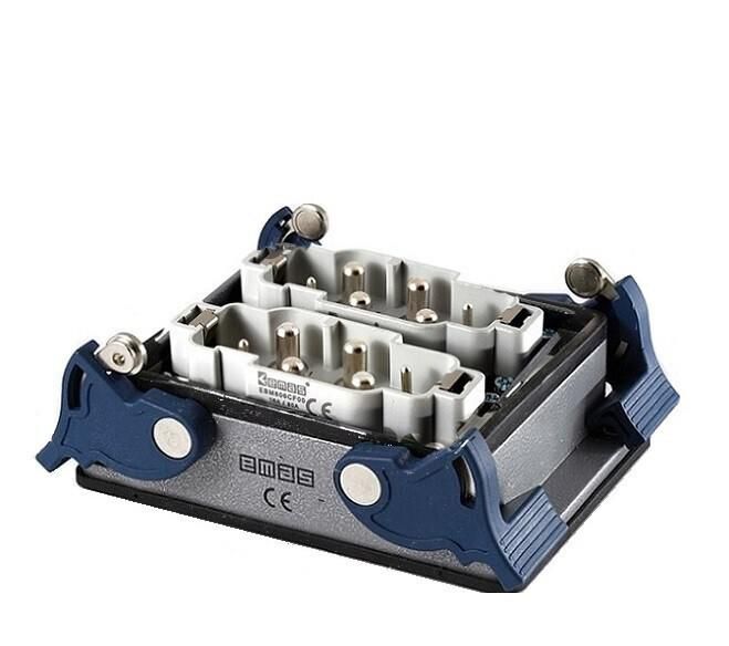 Вилка низкая 4-фиксатора для панели 12 полюсов 2х(4х80А+2х16А) с кожухом и штепселем, металлический, нижний ввод, IP65 от бренда EMAS - это надёжный коммутационный элемент для подключения мощного оборудования в промышленных распределительных щитах. Артикул ebm812fm44 обеспечивает безопасную передачу тока через 12 контактов в защищённом корпусе, подходящий для жестких условий эксплуатации.