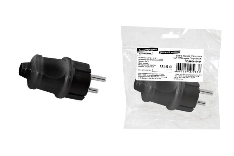 | Вилка прямая с/з черная 16А 250В серии "Народная" | SQ1806-0404 | TDM | 25.02.2026 | Под заказ | 59,62 ₽ | шт. | от 30 дней |