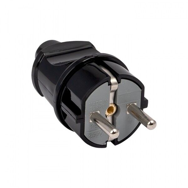 Вилка прямая усиленная с заземлением черная 16А 250В Proxima | AVP16-30-r EKF