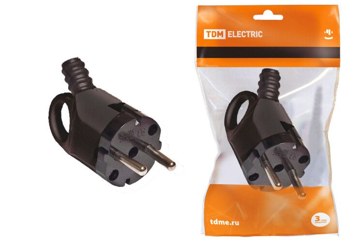 Вилка угловая с ушком с заземлением черная 16А 250В от TDM ELECTRIC (артикул sq1806-0006) предназначена для надёжного подключения бытовых и профессиональных электроприборов с заземлением. Угловая форма позволяет компактно размещать штекер в плотной проводке, а ушко обеспечивает безопасную фиксацию кабеля.