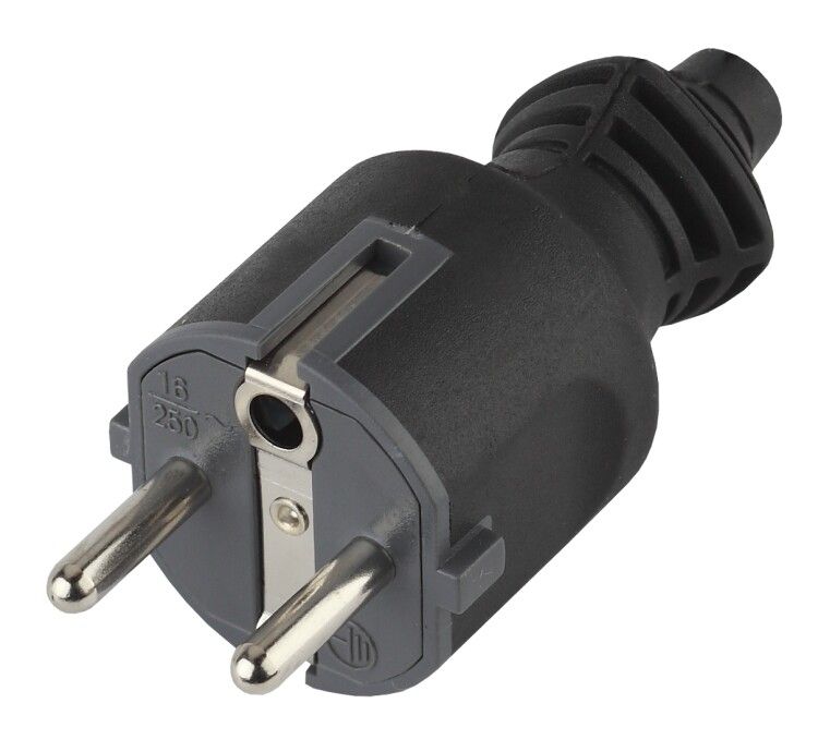Вилка с защитным контактом 16А прямой ввод черная (10/200/6000) V4(B) совместима с любыми розетками стандарта Schuko (CEE 7/4) и аналогичными европейскими типами. Для монтажа необходимо: