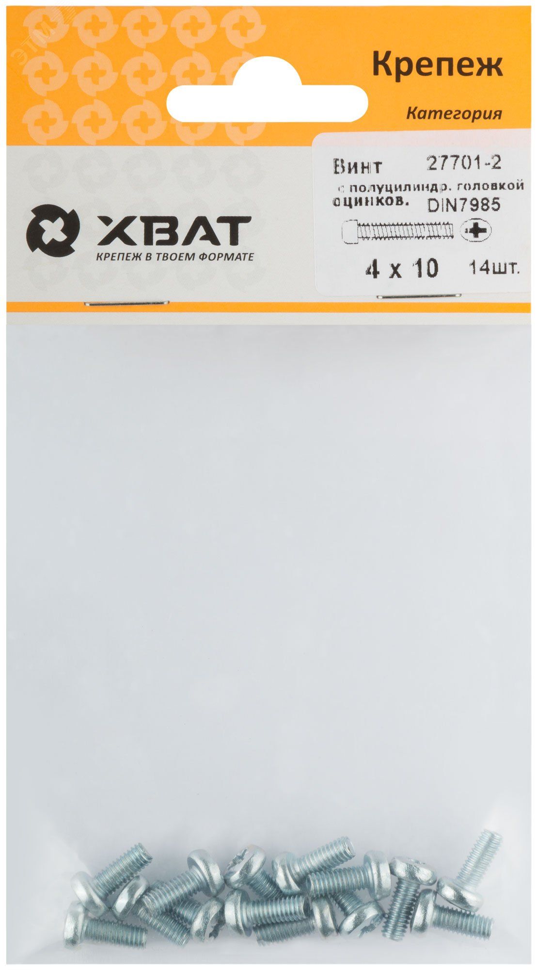 Винт DIN7985 М4х10 полукруглая головка оцинкованный (14 шт) - 27701-2 Хортъ