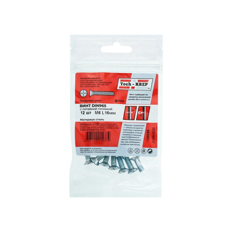 - Артикул 126595 от Tech-KREP удобен для заказа запасных частей - всегда можно найти точно такие же винты DIN965 М6х16