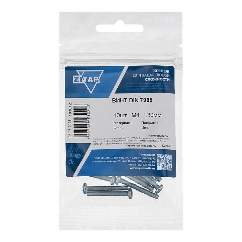 | Винт с полукруглой головкой М4х30 DIN 7985 оцинк. (уп.10шт) Tech-Krep/Zitar 103012 | 13.03.2026 | Под заказ | 22,21 ₽ | уп. 10 шт. | от 13 дней |