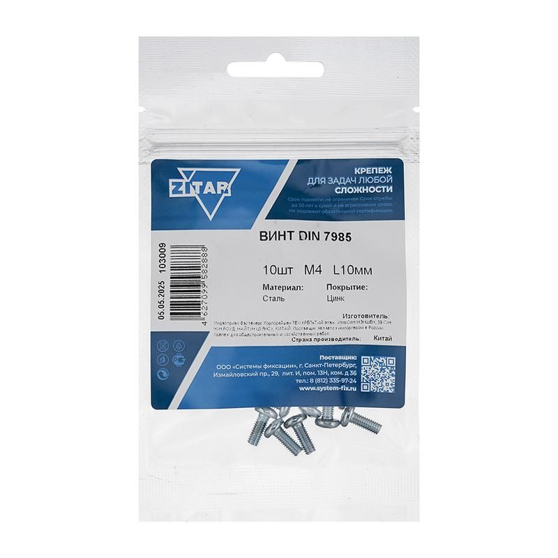 | Винт с полукруглой головкой М4х10 DIN 7985 оцинк. (уп.10шт) Tech-Krep/Zitar 103009 | 13.03.2026 | Под заказ | 20,14 ₽ | уп. 10 шт. | от 13 дней |