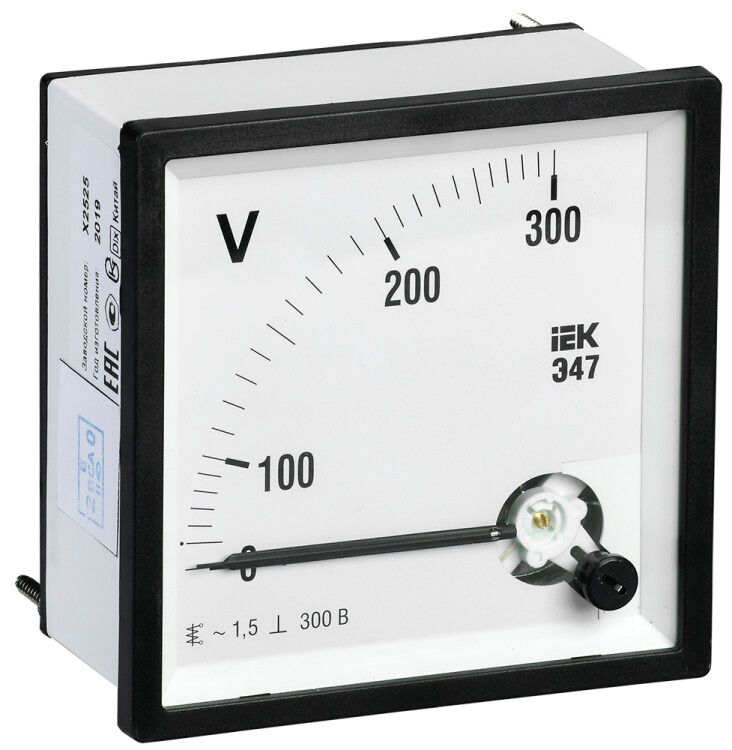Вольтметр Э47 300В класс точности 1,5 96×96 мм - аналоговый прибор от IEK (ИЭК) с артикулом ipv20-6-0300-e, предназначенный для измерения переменного напряжения до 300 В в распределительных щитах жилых, коммерческих и промышленных объектов.