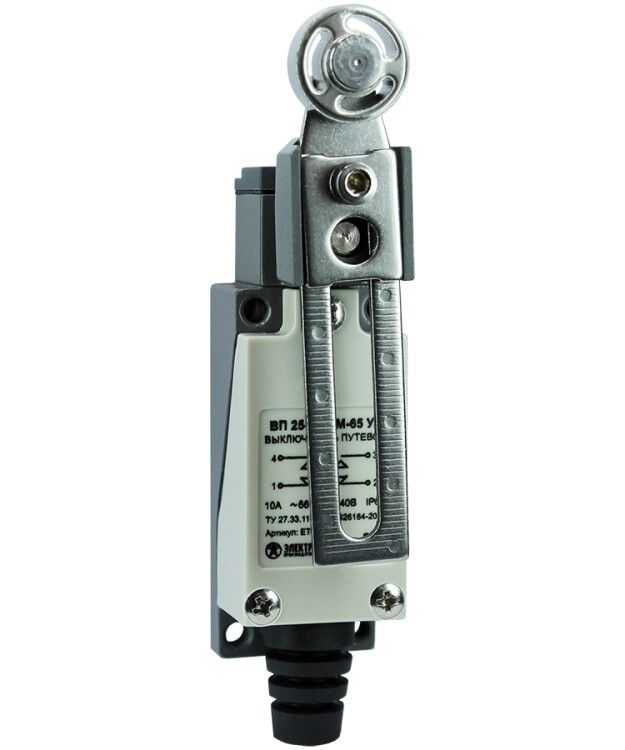 Выключатель путевой ВП 25-2143М-65 У2 от бренда Электротехник - это механический коммутационный аппарат для фиксации и контроля положения движущихся узлов в автоматизированных системах. Его компактная конструкция, защищённый корпус IP65 и безинерционный механизм делают его подходящим решением для промышленной автоматики, где важна точность и долговечность.