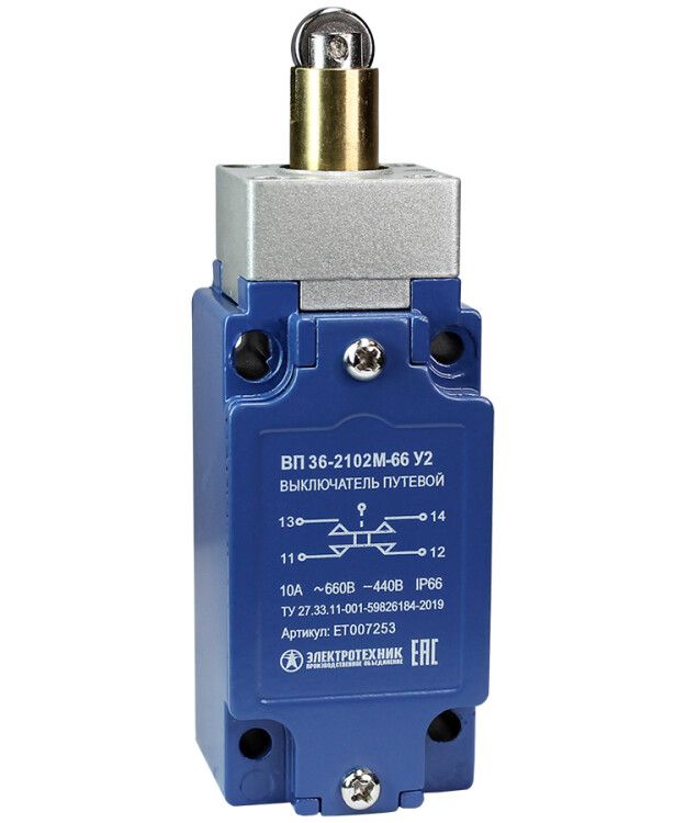 | Выключатель путевой ВП 36-2102М-66 У2 1НО+1НЗ 3А IP66 толкатель с роликом безинерционный 30х60мм без сальника Электротехник ET007253 | 20.02.2026 | 157 шт. | 1 565,63 ₽ | шт. | от 13 дней |