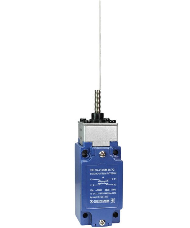 Выключатель путевой ВП 36-2106М-66 У2 1НО+1НЗ 3А IP66 рычаг пружинный "кошачий ус" безинерционный 30х60мм без сальника Электротехник ET007290