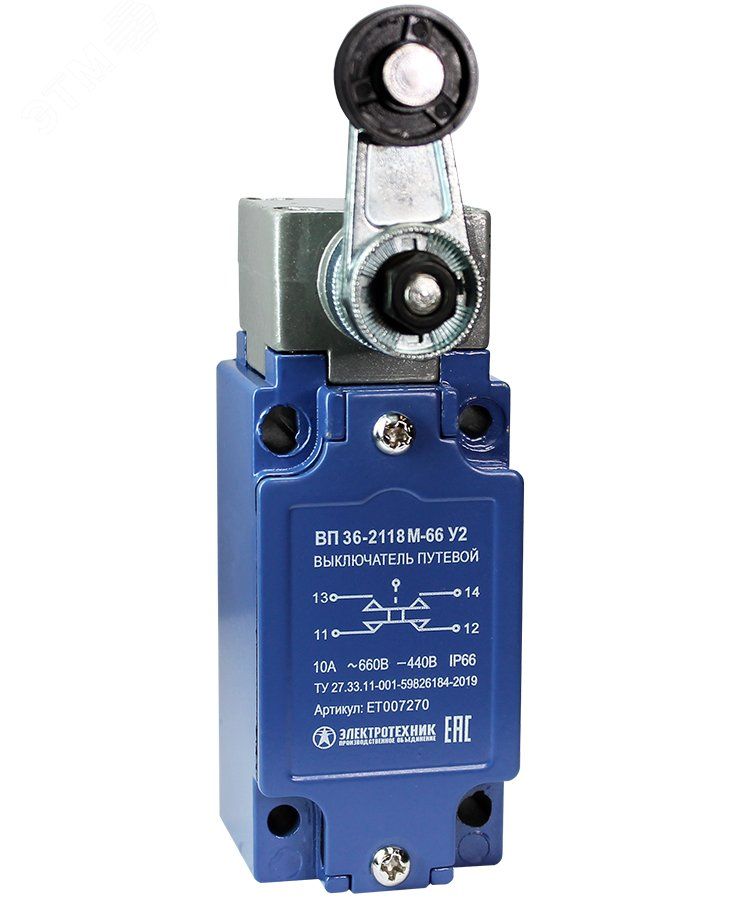 | Выключатель путевой ВП 36-2118М-66 У2 1НО+1НЗ 3А IP66 рычаг с пластиковым роликом безинерционный 30х60мм без сальника Электротехник ET007270 | 01.03.2026 | Под заказ | 1 565,63 ₽ | шт. | от 30 дней |