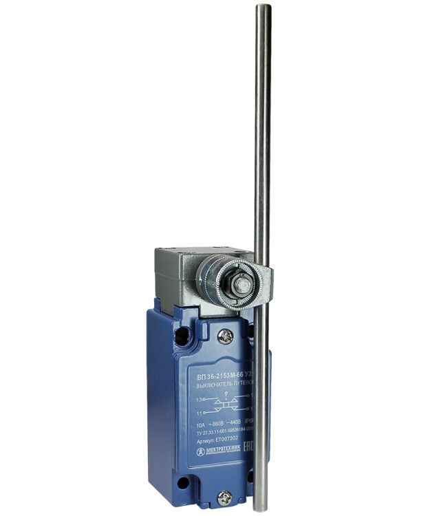 Выключатель путевой ВП 36-2153М-66 У2 1НО+1НЗ 3А IP66 рычаг стальной круглый регулир. по длине безинерционный 30х60мм без сальника Электротехник ET007302