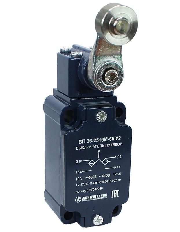 | Выключатель путевой ВП 36-2516М-66 У2 1НО+1НЗ 3А IP66 рычаг со стальным роликом инерционный 30х60мм без сальника Электротехник ET007266 | 01.03.2026 | Под заказ | 1 817,22 ₽ | шт. | от 30 дней |