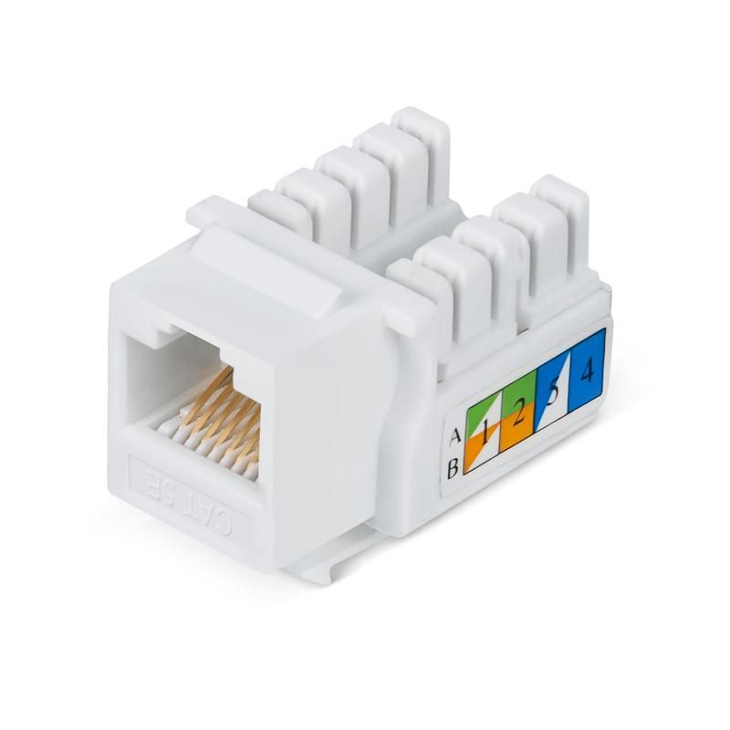 Вставка Keystone Jack RJ-45 категория 5e заделка тип 110 белая от бренда Cabeus (артикулы kj-rj45-cat.5e-90 и 7008c) - это компактный модуль для организации сетевых соединений в патч-панелях, настенных розетках и модульных системах Mosaic. Устройство обеспечивает надёжное подключение Ethernet-кабелей с использованием технологии 110-заделки.