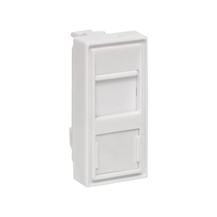Эта вставка используется для создания информационных розеток в офисах, центрах обработки данных, учебных заведениях и на производстве. Устанавливается в кабель-каналы или рамки формата Mosaic, чтобы вставить туда модуль Keystone - например, RJ45 для Ethernet, USB, HDMI или другие типы. Применяется там, где требуется чистая, организованная и защищённая точка подключения сетевого или другого активного оборудования.