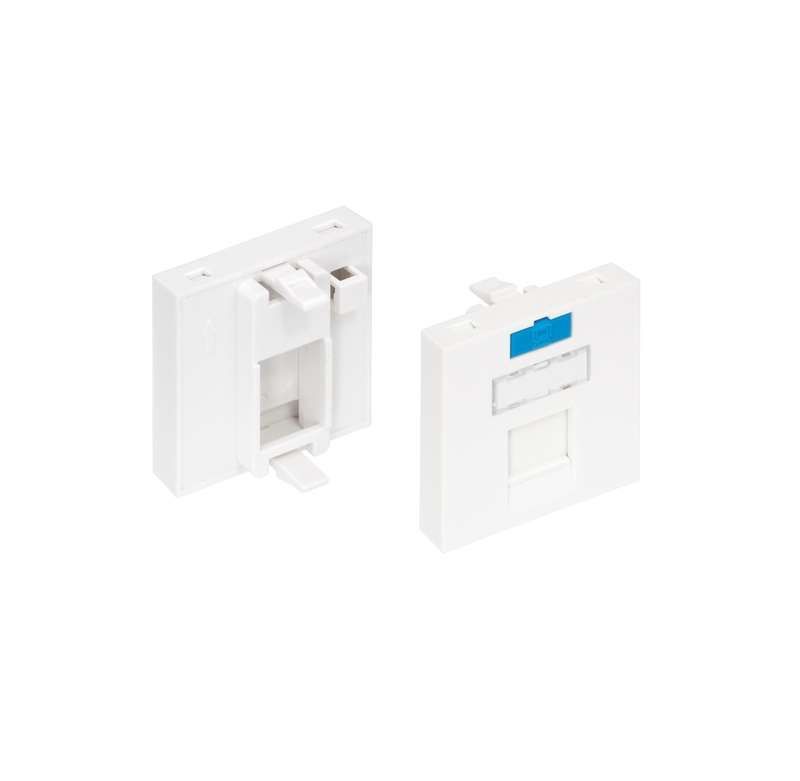 Вставка совместима со всеми модулями Keystone, которые имеют стандартный размер 45×45 мм. Установка происходит в подготовленное отверстие в панели - вставка просто вставляется до щелчка, защелки фиксируют её плотно. Для демонтажа достаточно слегка надавить на боковые выступы - она легко извлекается без инструментов. Монтаж возможен в любую панель с подходящими габаритами отверстия - проверьте соответствие размеров перед установкой.