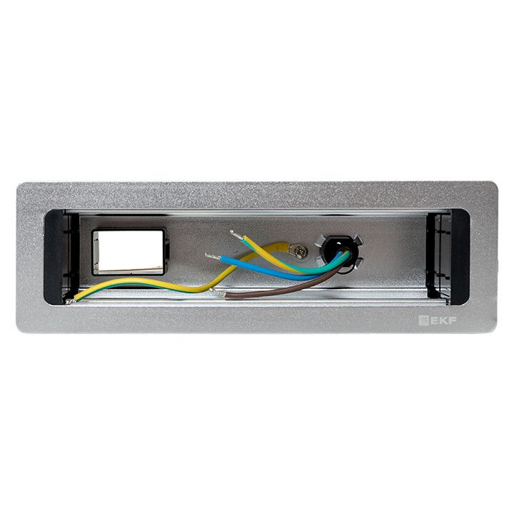 Розеточный блок EKF C-Line совместим со всеми стандартными модулями шириной 17,5 мм (например, Schneider, Legrand, ABB). Для установки требуется вырезать в столешнице прямоугольное отверстие размером 149×104 мм. Крепление осуществляется с помощью болтов, входящих в комплект. После монтажа крышку необходимо плотно закрыть - она фиксируется на шарнире. Учитывайте, что кабель питания выходит сзади - место для его выхода должно быть свободным.