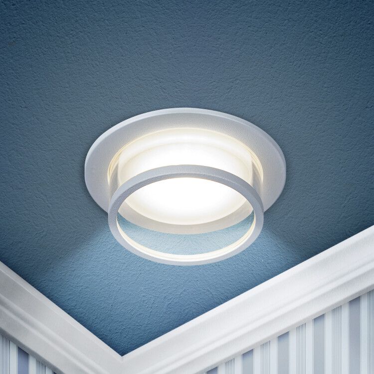 Для работы необходим понижающий трансформатор (драйвер) 12 В, который устанавливается вне светильника - обычно в распределительной коробке или за потолком. Монтаж выполняется путём врезки в подготовленное отверстие 75–92 мм в зависимости от толщины материала. Крепление осуществляется с помощью пружинных зажимов, входящих в комплект. Убедитесь, что толщина перекрытия позволяет полностью поместить корпус светильника без выпирания.