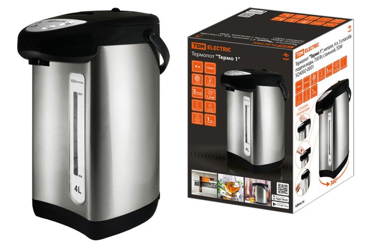 Вт стальной | SQ4002-0001 TDM Термопот "Термо 1" металл 4 л 3 способа подачи воды 750