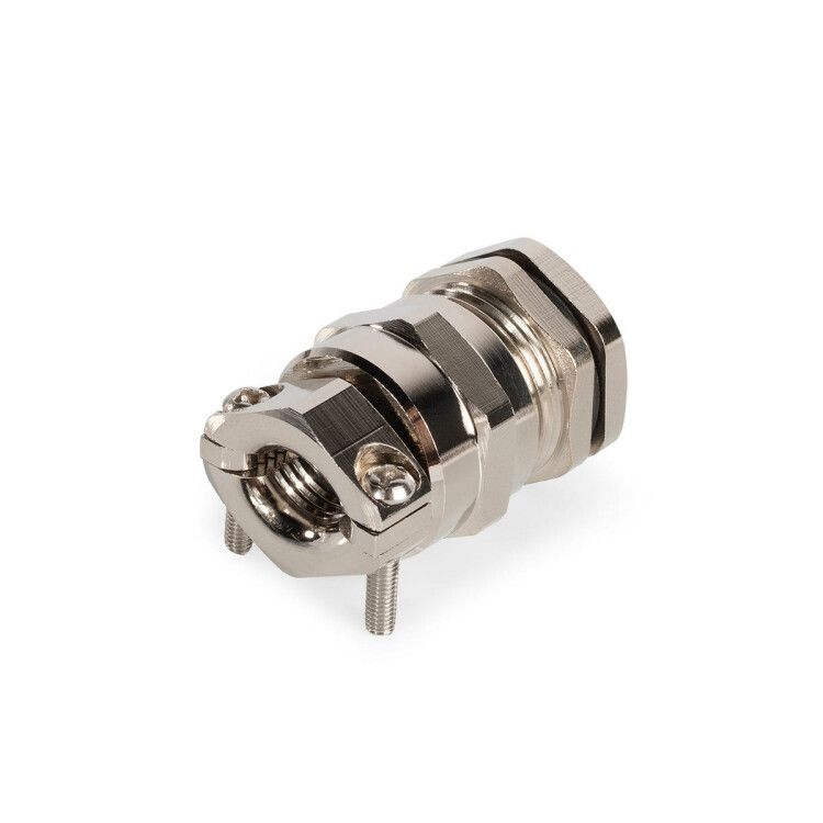 После установки в отверстие, накидная гайка закручивается снаружи, а два винта внутри горловины затягивают полугайки - они плотно обжимают кабель, предотвращая его выдергивание. Уплотнительные кольца из неопрена обеспечивают герметичность вокруг оболочки кабеля.