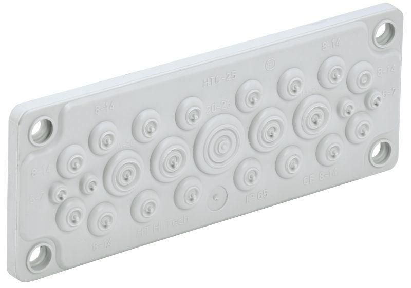 - Высокая плотность: 25 отверстий позволяют ввести много кабелей в одном месте, снижая количество точек ввода и упрощая организацию проводки