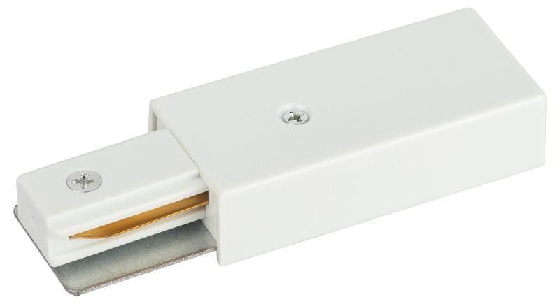 Ввод питания для однофазного трекового шинопровода белый TR-1PA-PC-WH используется для первичного подключения трековой системы освещения к электросети 220 В. Он устанавливается на стене и служит точкой входа электроэнергии в шинопровод. Подходит для интерьеров жилых помещений, офисов, магазинов и выставочных залов, где применяются модульные трековые светильники.