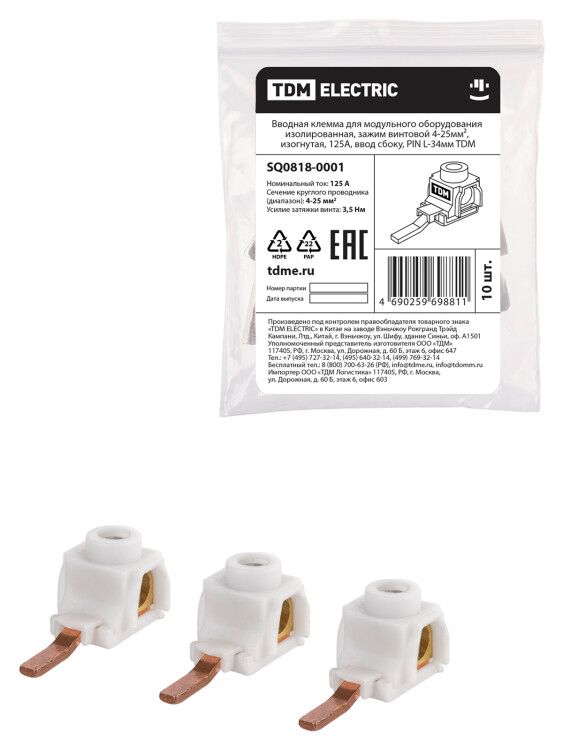 | Клемма вводная для модульного оборудования изолированная с винтовым зажимом 4-25мм | SQ0818-0001 | TDM | 26.02.2026 | Под заказ | 93,31 ₽ | шт. | от 30 дней |
