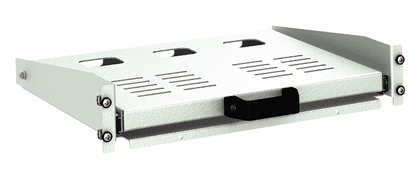 Полка выдвижная для клавиатуры, глубина 300 мм, 2U, для 19" IT-корпусов, RAL7035 используется для крепления устройств, которые нельзя смонтировать в стандартные 19"-рамки - например, клавиатур, мышей, мини-ПК, сетевых коммутаторов, USB-концентраторов или других периферийных модулей. Подходит для напольных IT-шкафов DKC серии CQE/STI. Благодаря выдвижному механизму обеспечивает легкий доступ ко всем сторонам установленного оборудования без необходимости открывать дверцу шкафа.