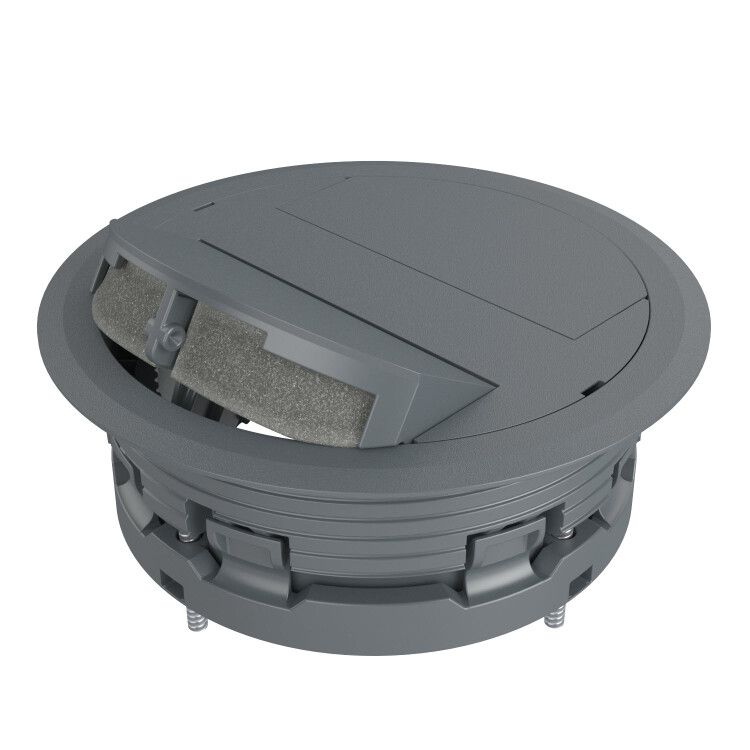Этот кабельный вывод используется для организации прохода силовых и слаботочных кабелей через двойные полы - например, в серверных помещениях, офисах с подпольными каналами, производственных зонах с поднятymi полами. Устройство обеспечивает уплотнение, предотвращает попадание пыли и влаги внутрь полости, сохраняет целостность конструкции пола и позволяет легко перекрывать неиспользуемые выходы.